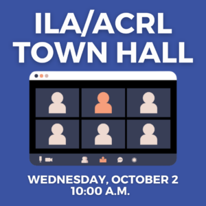 This is a reminder that a Zoom ILA/ACRL Town Hall meeting is scheduled for this Wednesday, October 2 at 10 am.